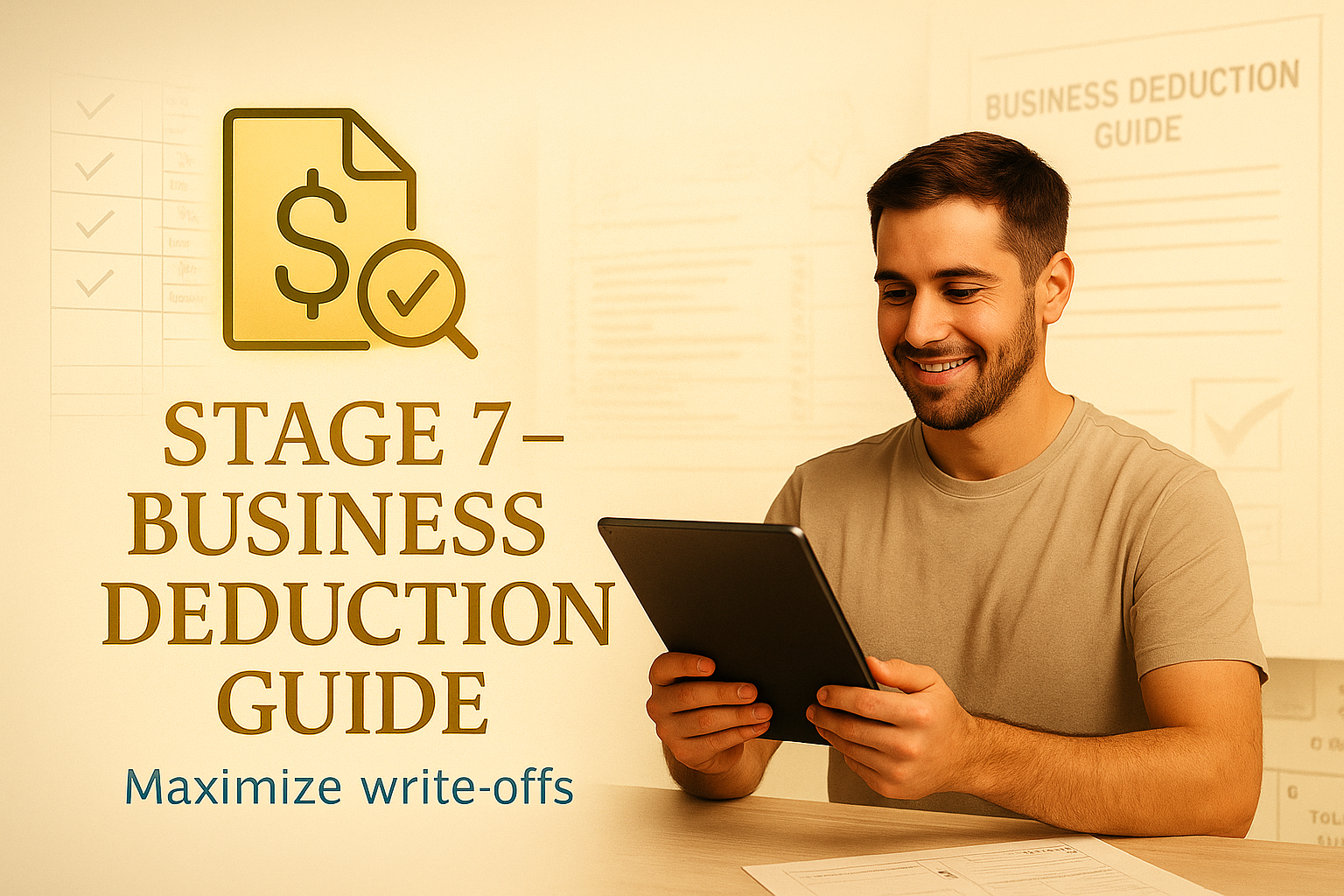 The 7-Stage Tax Reduction System™ concludes with the Business Deduction Guide: How to Write-Off More — your visual playbook for mastering the art of legal deductions. This easy-to-read guide reveals exactly how the IRS views business expenses, helping you turn everyday spending into strategic, audit-proof savings.